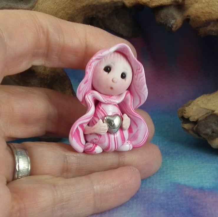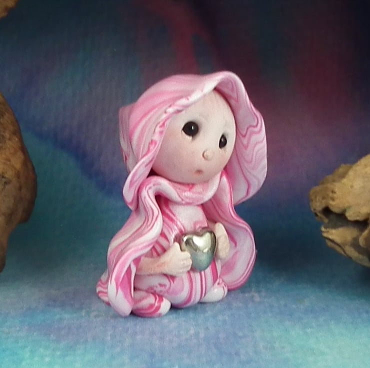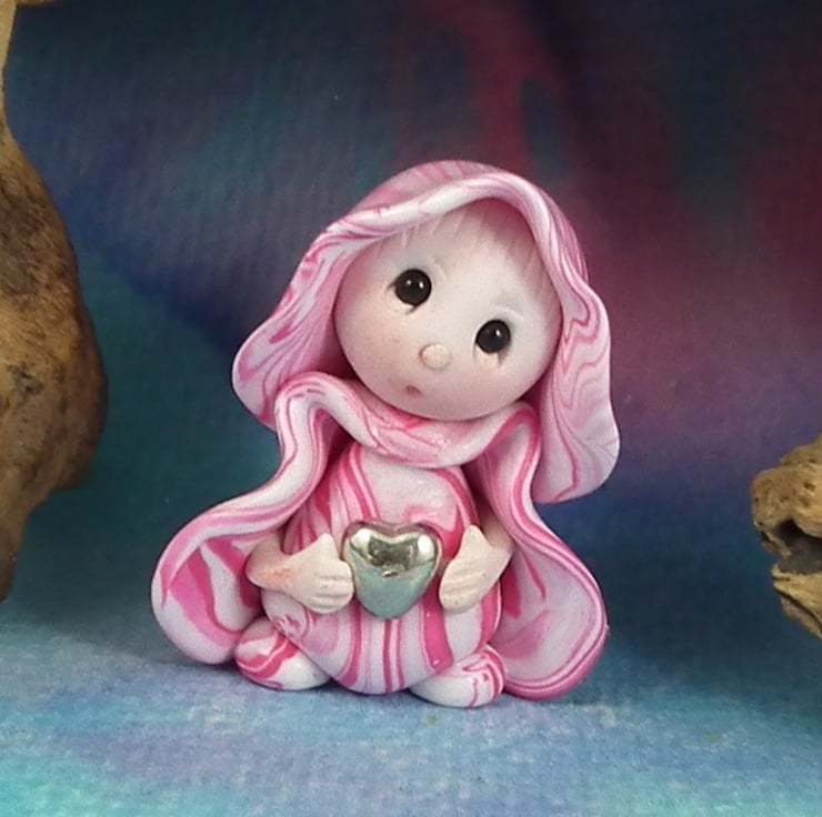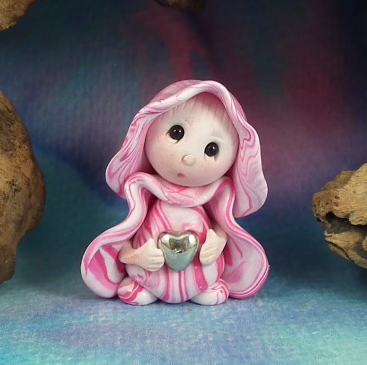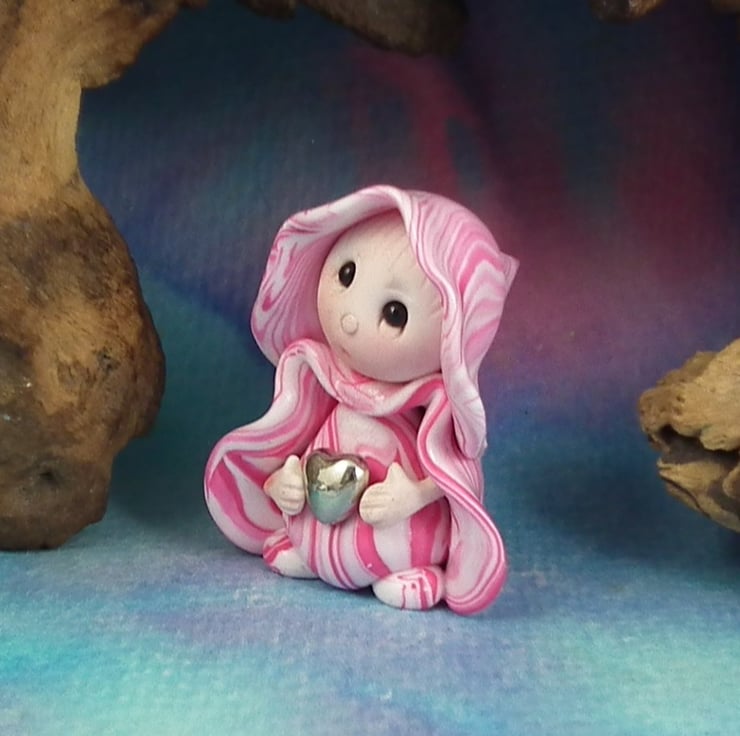 This is a 'one of a kind' creation having been entirely handmade without the use of moulds here at my studio on the Sussex Coast. Modelled with artist blend polymers, blushed before sealing with lacquer, Verity has sparkling black onyx eyes and Spring robes. Verity the Valentine Gnome is just one and a half inches tall.