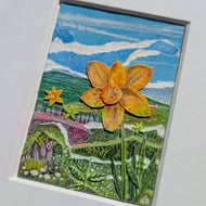 'The Tiny Retreat' is a tiny, mixed media collage float mounted into a custom A5 mount.