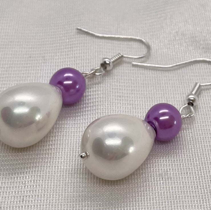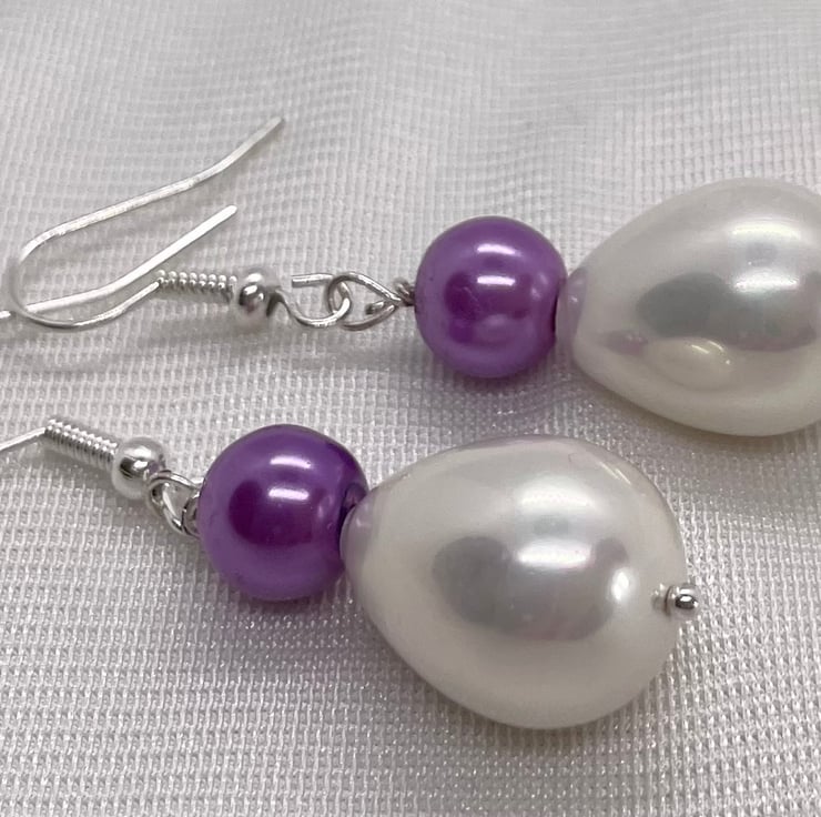 Mother of Pearl teardrop with fuchsia coloured pearl with silver plated ear wires make them a must for the elegant woman. The earrings have approximately a 4cms drop.