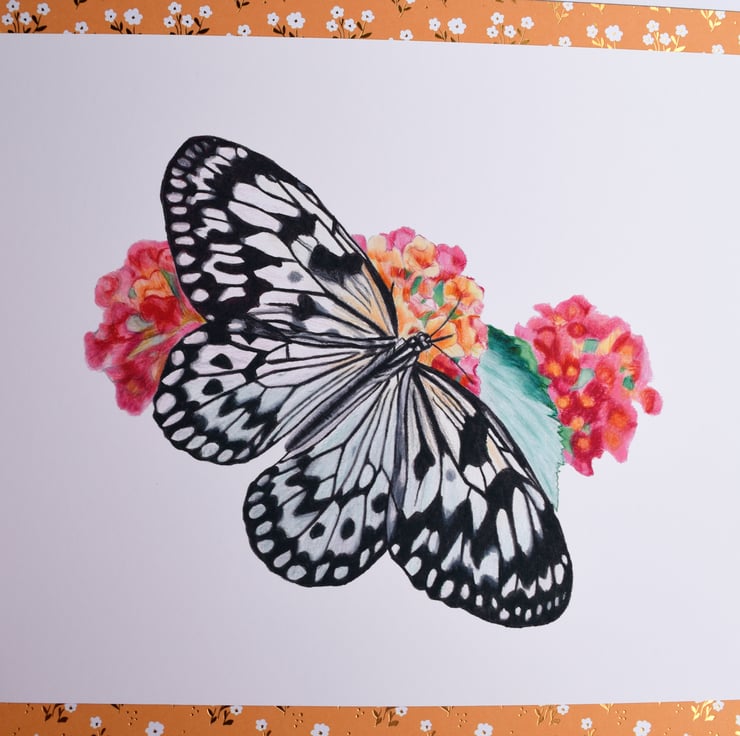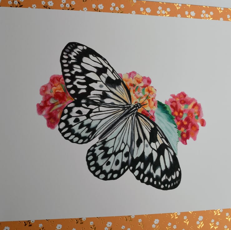 White Tree Nymph Butterfly - 7 x 6 inches on 11.5 x 9 acid free Strathmore Bristol Vellum.