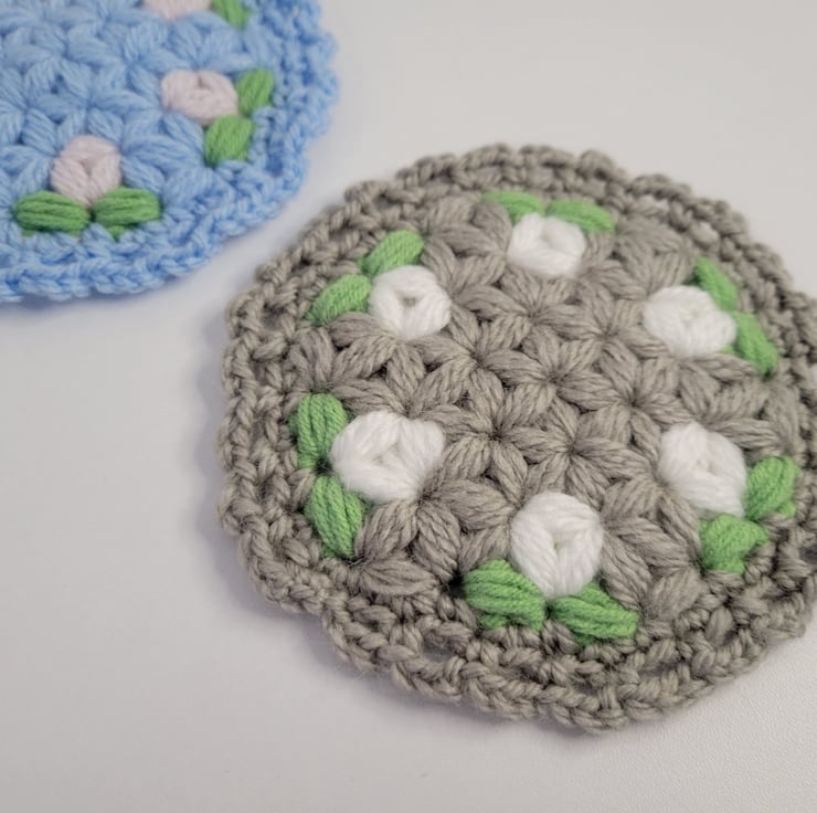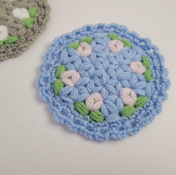 Round crochet coasters with floral pattern are not only for cup, also for plant pot, or just for decoration. They are sold in set of 2 pieces.