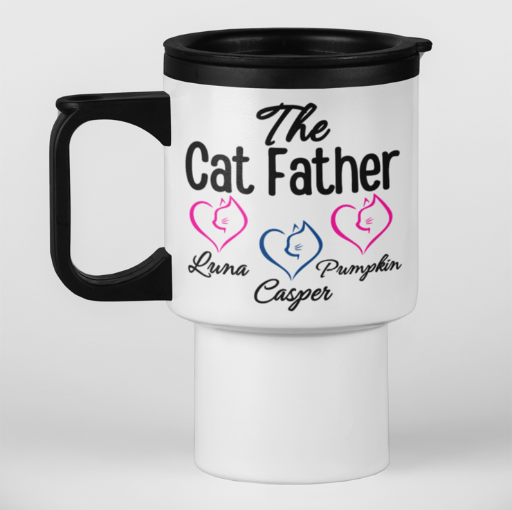 Personalised Cat Owner COUPLES Travel Mugs Set of 2 CAT Father & CAT Mother
