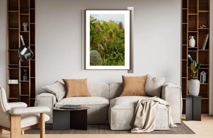 Signed, limited edition photographic art print of thistles in the wind in Pembrokeshire.
