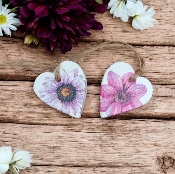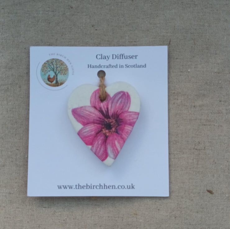 Bring the beauty of nature into your home with our Flower Heart Hanging Diffuser. This charming white clay diffuser is adorned with decoupaged flowers.