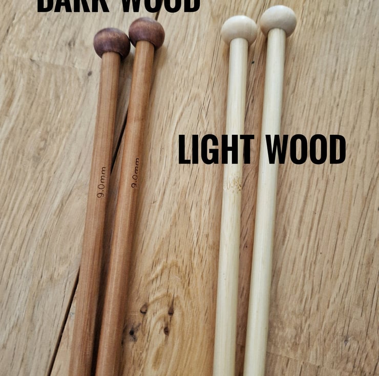 The bamboo needles are 25cm long and come in 8mm, 9mm or 10mm width.