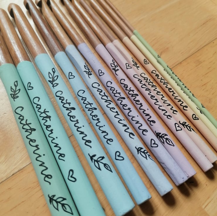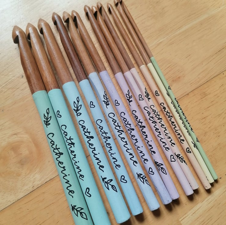 A gorgeous painted personalised crochet hook set of 12. The perfect gift for those in your life who love to crochet.