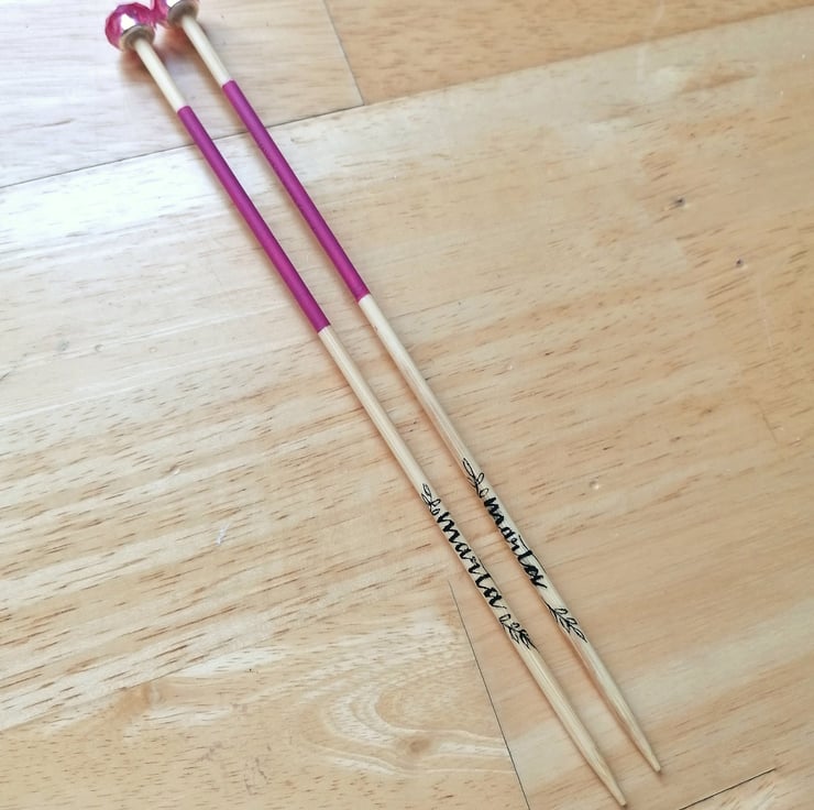 These are beautiful hand-painted and personalised knitting needles with a beaded end.