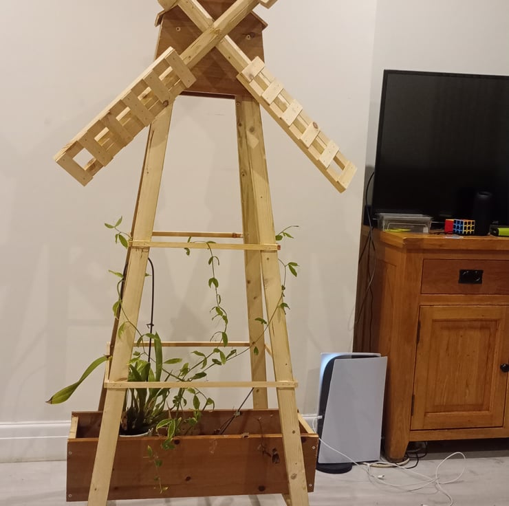 The solid wood hand made Windmill not only has a starter planter box but also supports like garden obelisks and trellises and is available in various sizes: 1.2m (£135) - 1.5m (£155) - 1.8m (£175) in height and provides an excellent growing environment for climbing plants and vegetables.