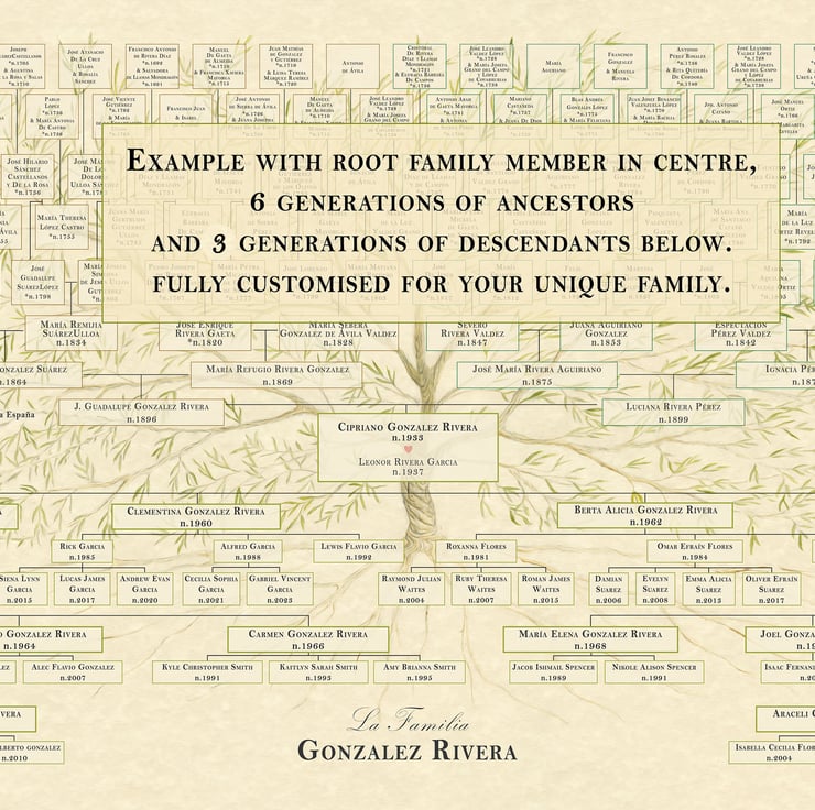 Family Tree Chart, a perfect parent, grandparent or spouse gift. Printed up to A2 (unframed)