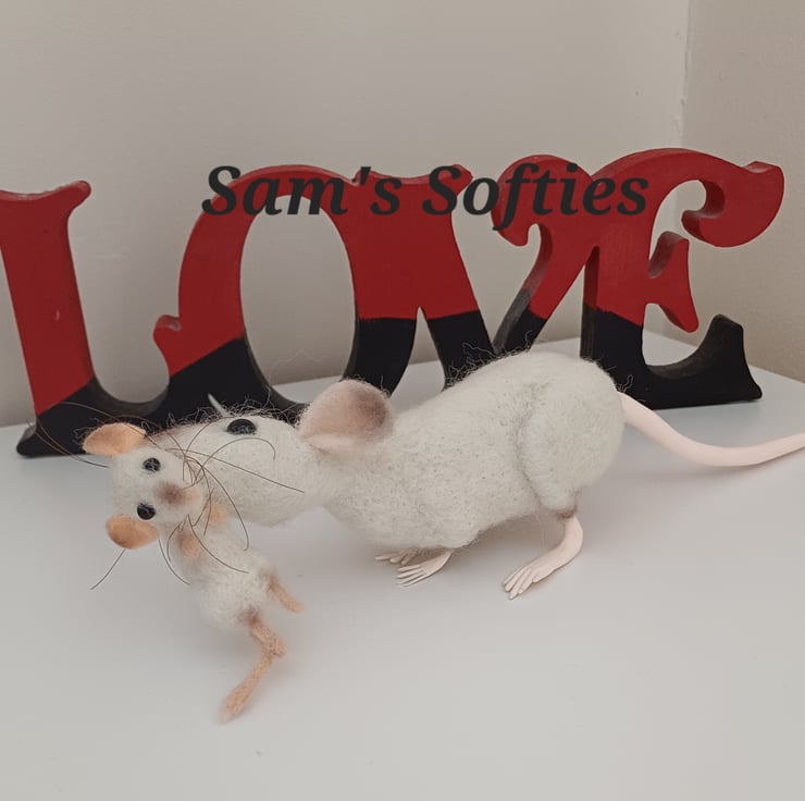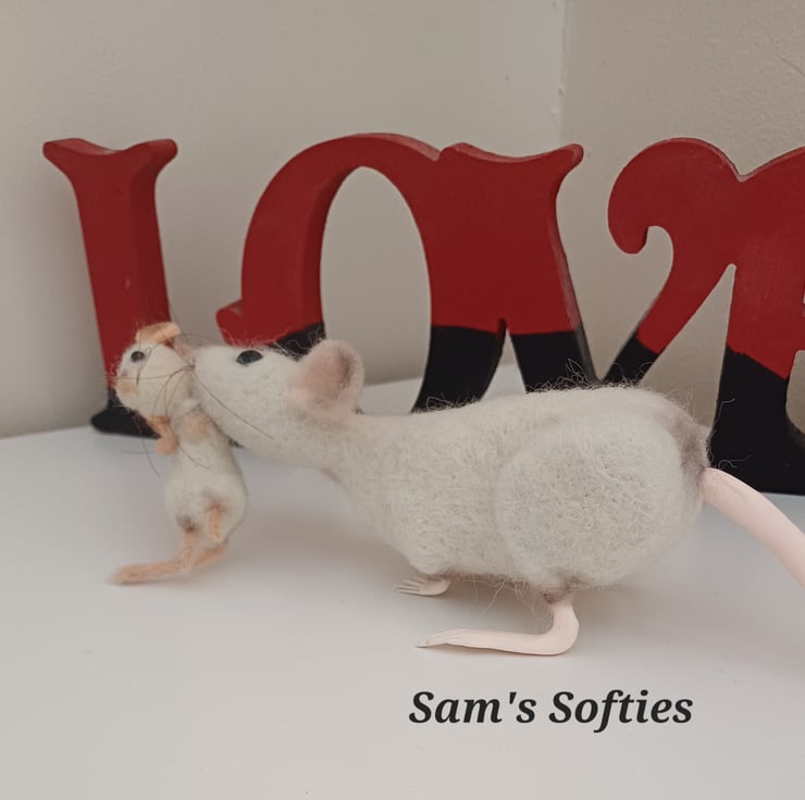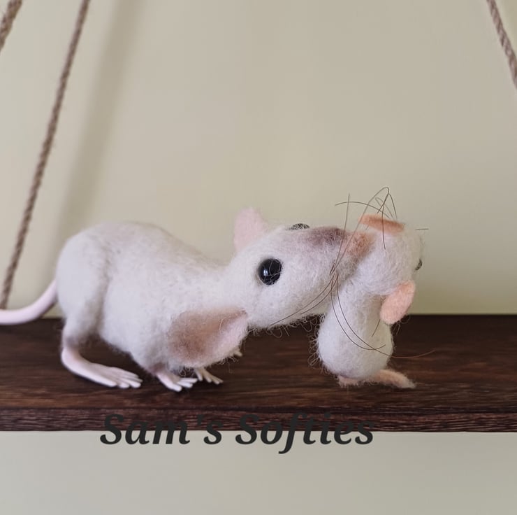 The baby is pure wool. No wire, but is attached to the parent rat.