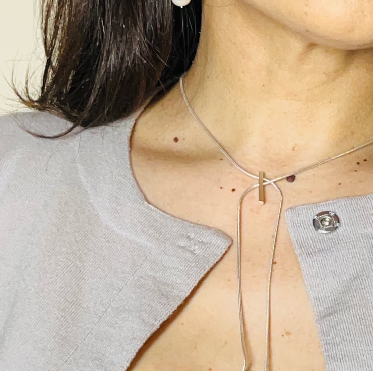I wanted to fuse the timeless elegance of pearls with a fresh architectural twist - a modern bar and a gently curving chain—this interplay of straight lines and soft arcs felt like an effortless way to highlight each pearl’s natural beauty. The result is a piece that reflects simplicity yet makes a statement wherever it’s worn.