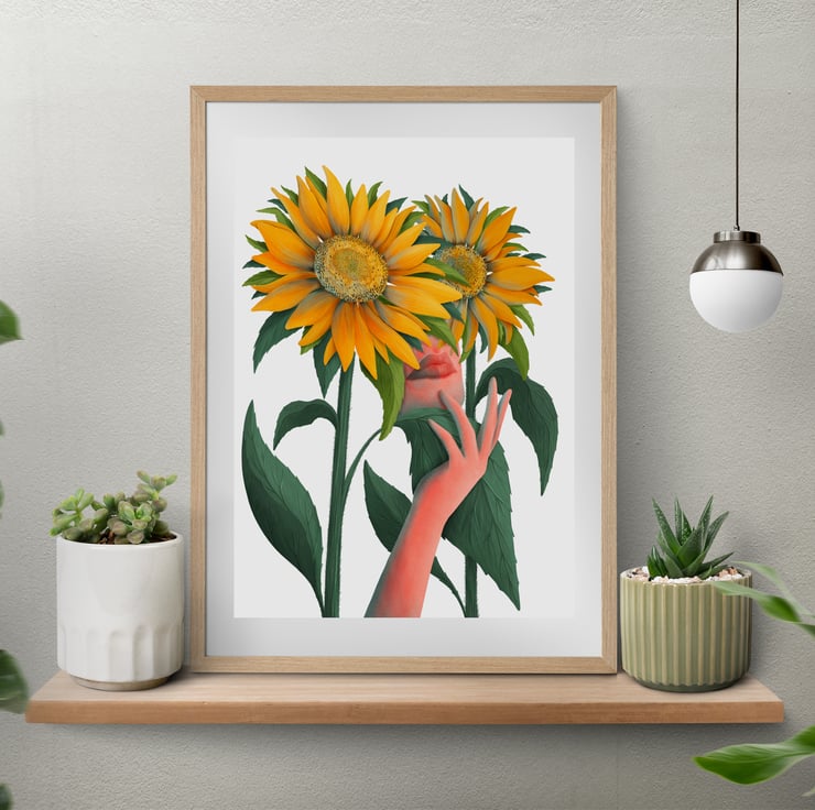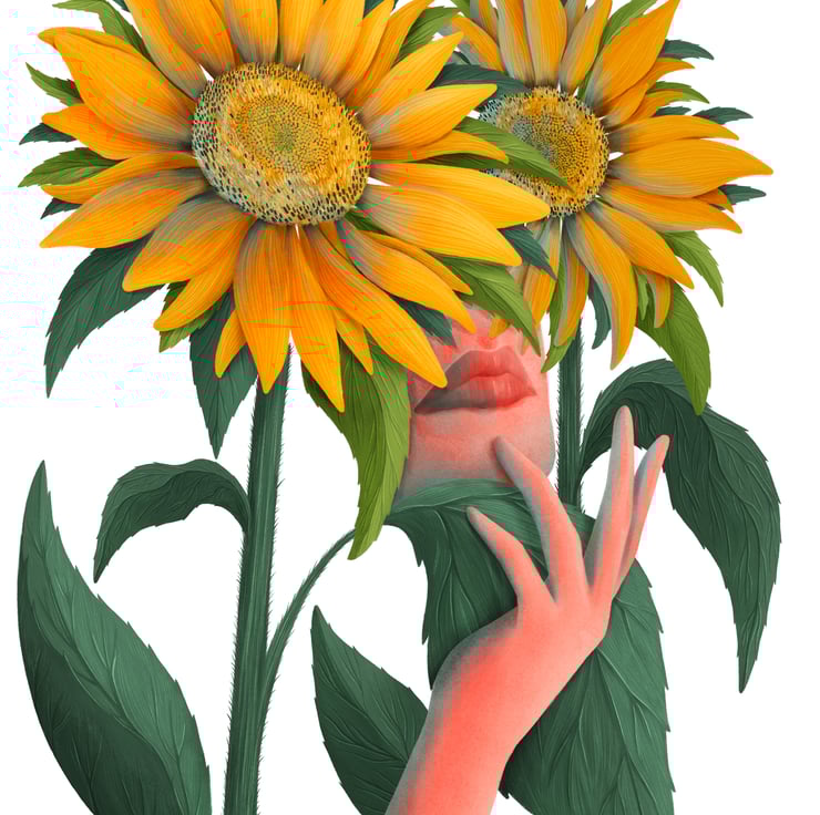 'Sunflowers' illustration is part of my Summer Flower collection, inspired by the warmth of Polish summers, the lively meadow flowers in full bloom during July, and the treasured childhood memories spent with my grandparents. It captures the timeless bond between humans and nature.