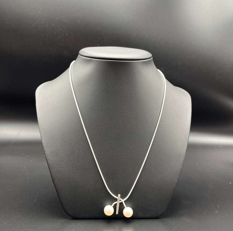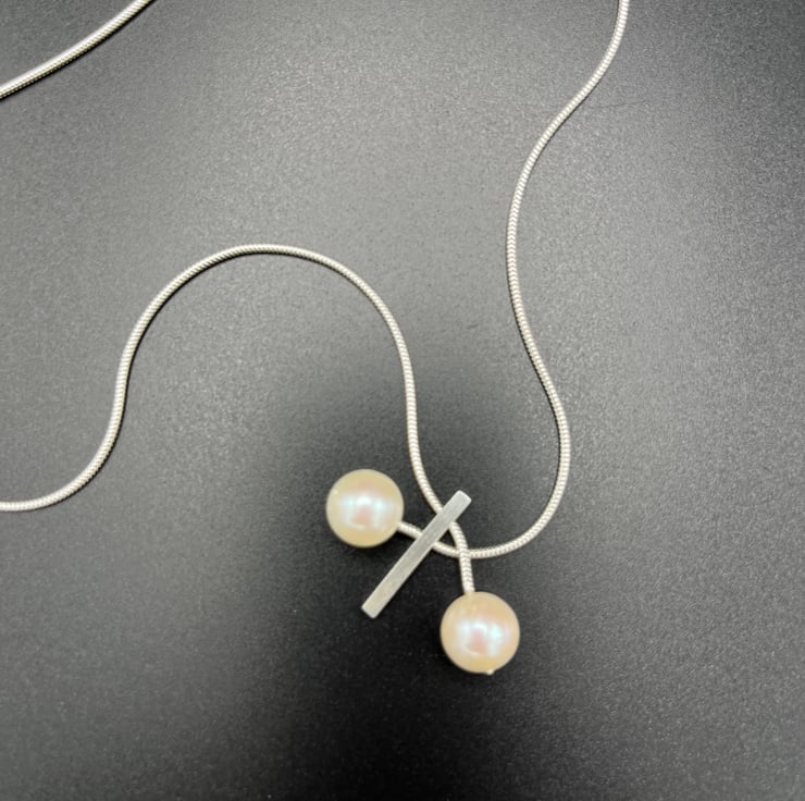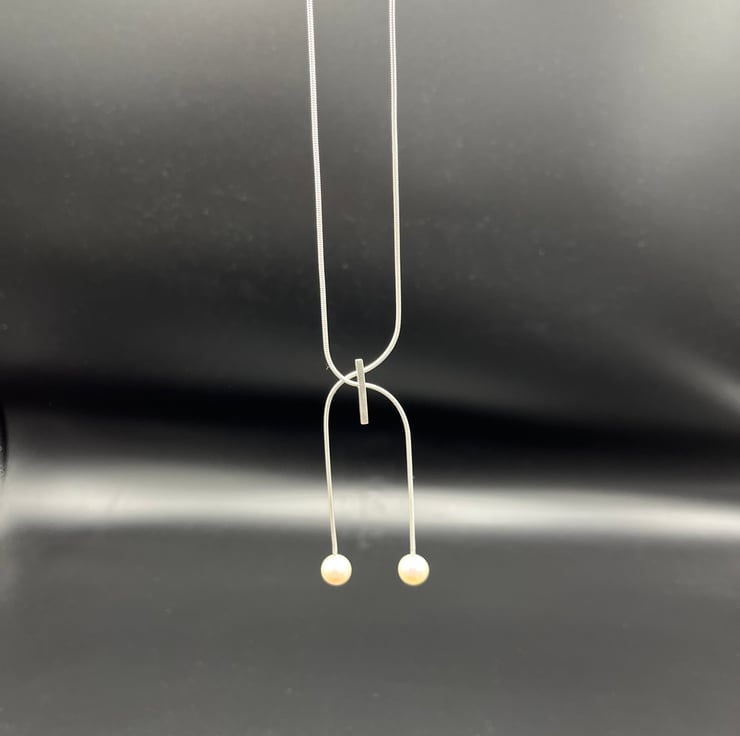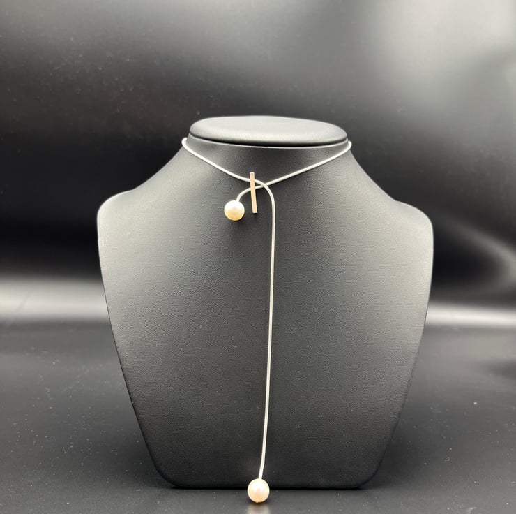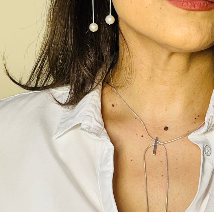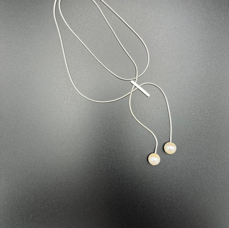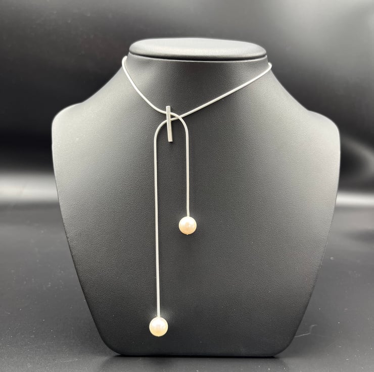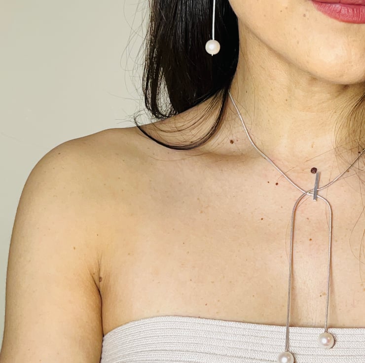 Elevate your look with this Modern Pearl Lariat Necklace, handcrafted in my home studio for a sleek and minimalist statement crafted from sterling silver and finished with cultured freshwater pearls that embody versatility and refined style.