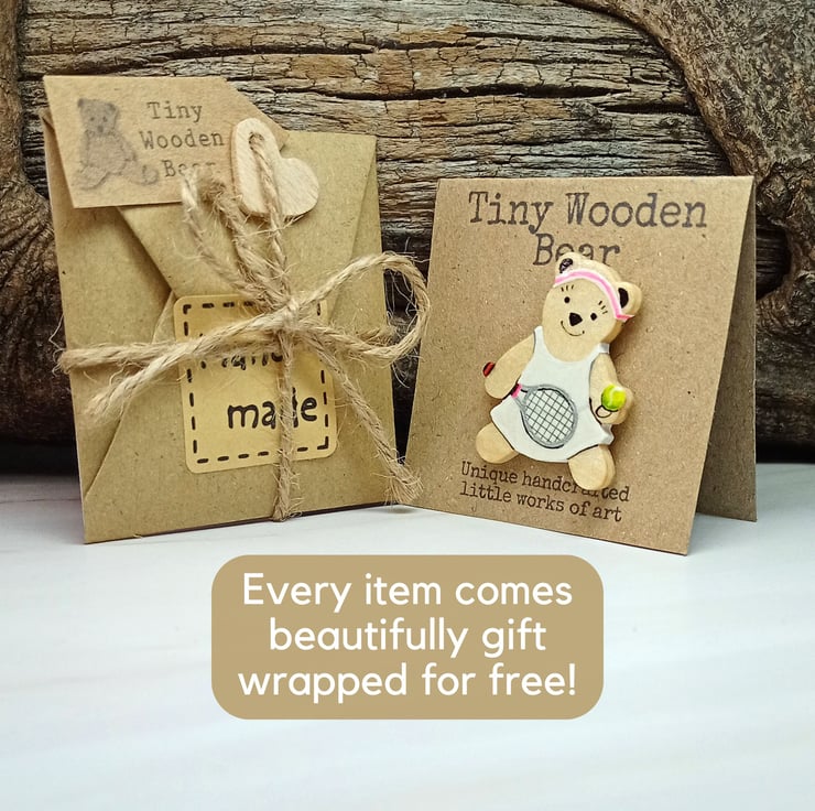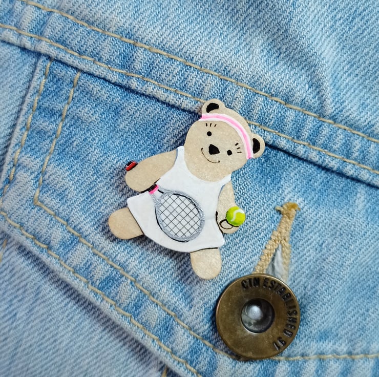 This delightful handmade wooden teddy bear pin is the perfect gift for any tennis fan! Lovingly crafted and hand-painted, each pin is a unique work of art, making it a special way to celebrate a win, thank a coach, or brighten a colleague's day. Whether it’s pinned to a lanyard, jacket, or bag, this little bear is sure to bring a smile wherever it goes.