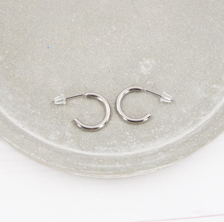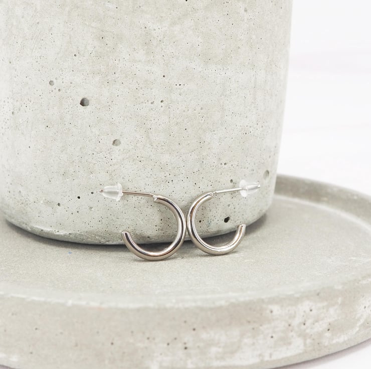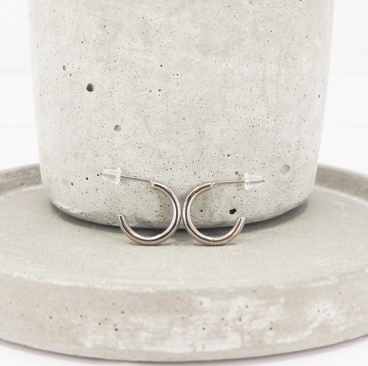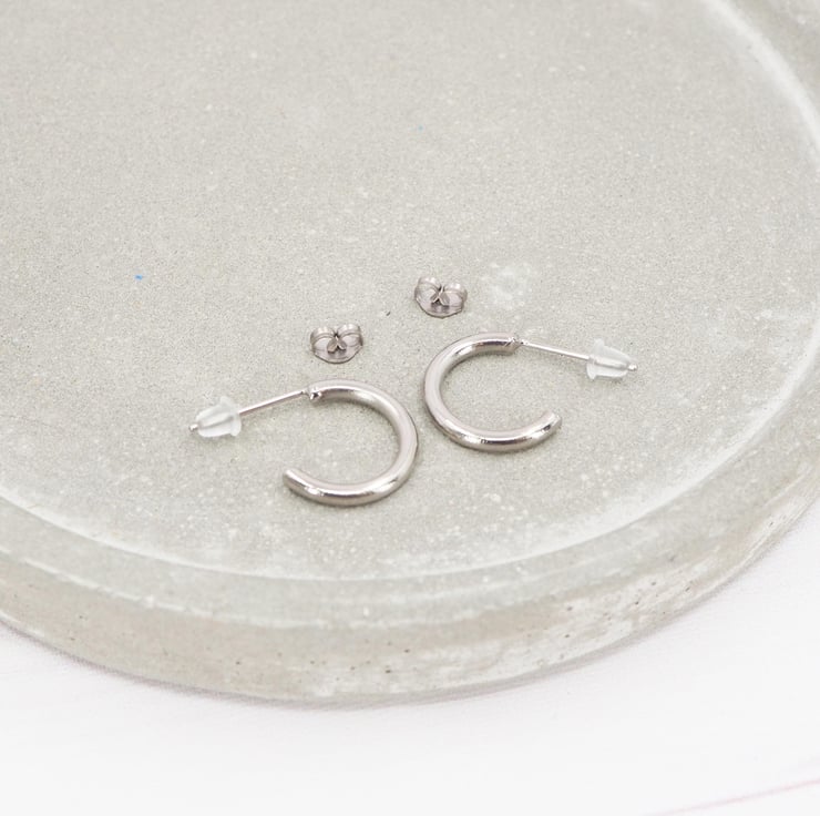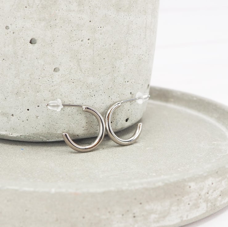 Solid 15mm titanium hoop earrings. 0.8mm hypoallergenic titanium ear wires.