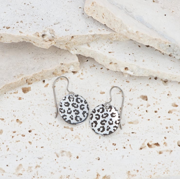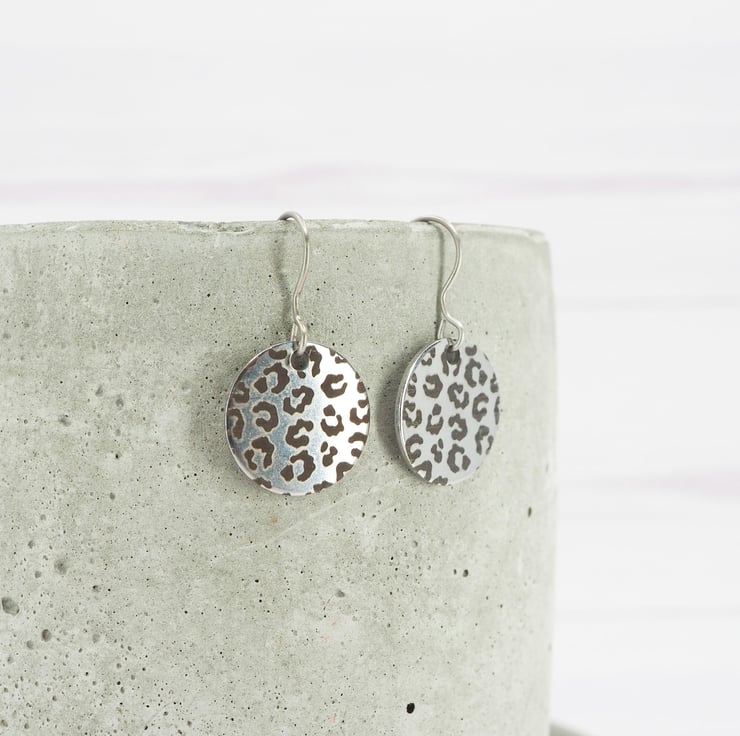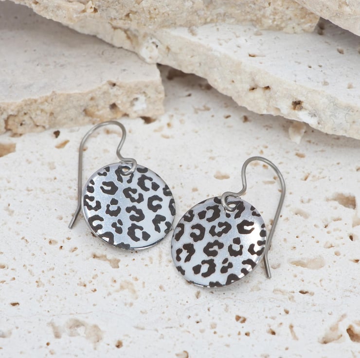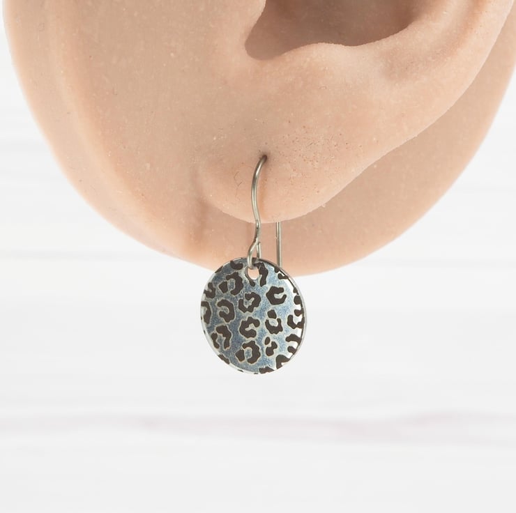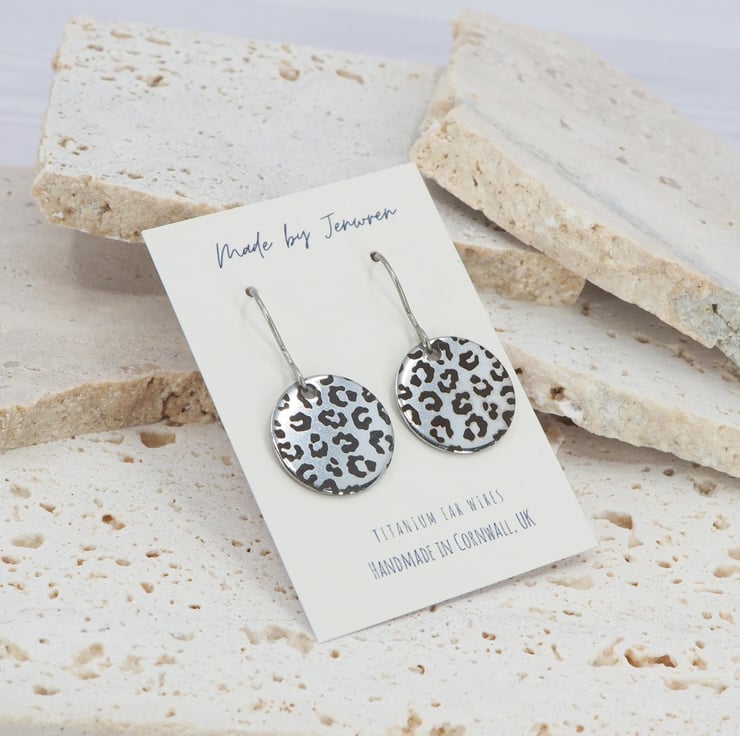 Leopard print dangle earrings - Hypoallergenic titanium ear wires