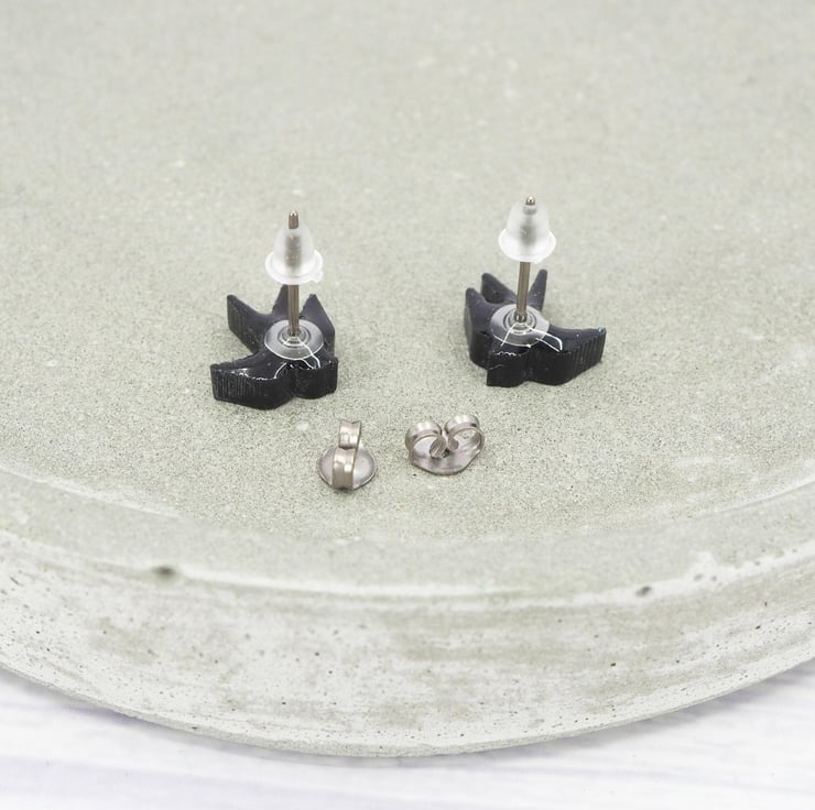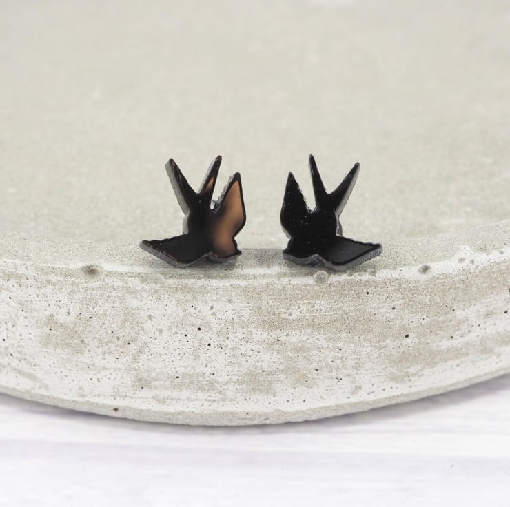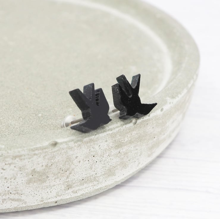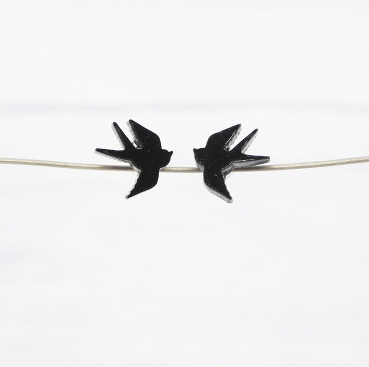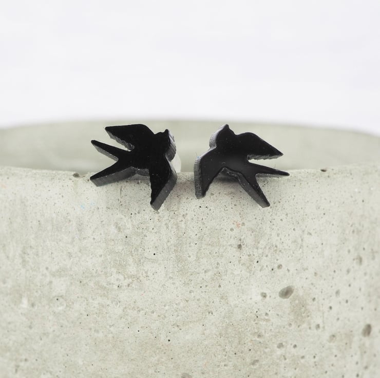Black acrylic swallow bird studs with 0.7mm ear stems.