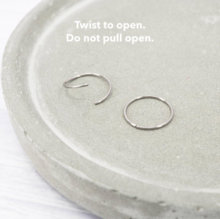The hoops twist open as shown in the pictures above so they can be slipped through the piercing easily.
