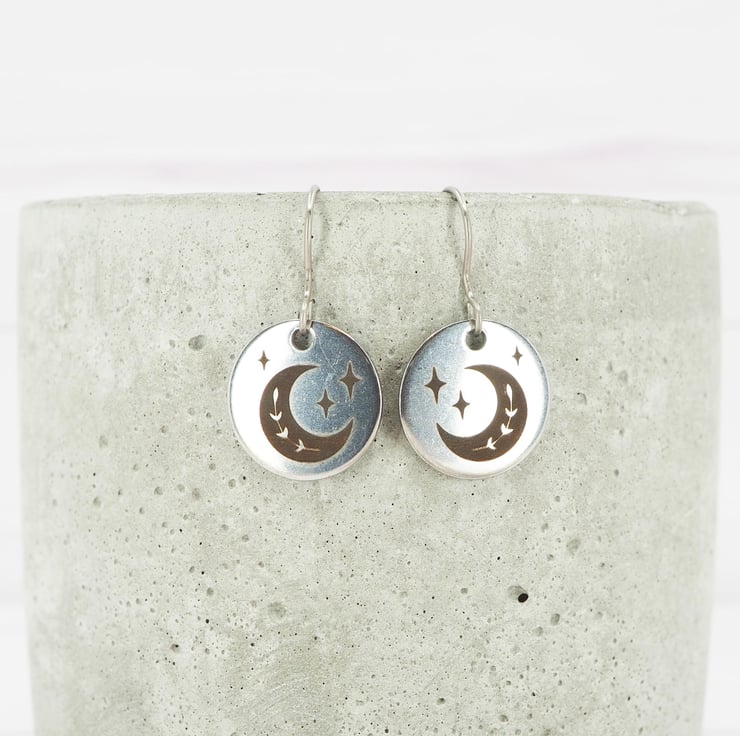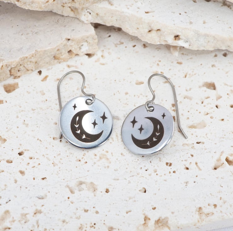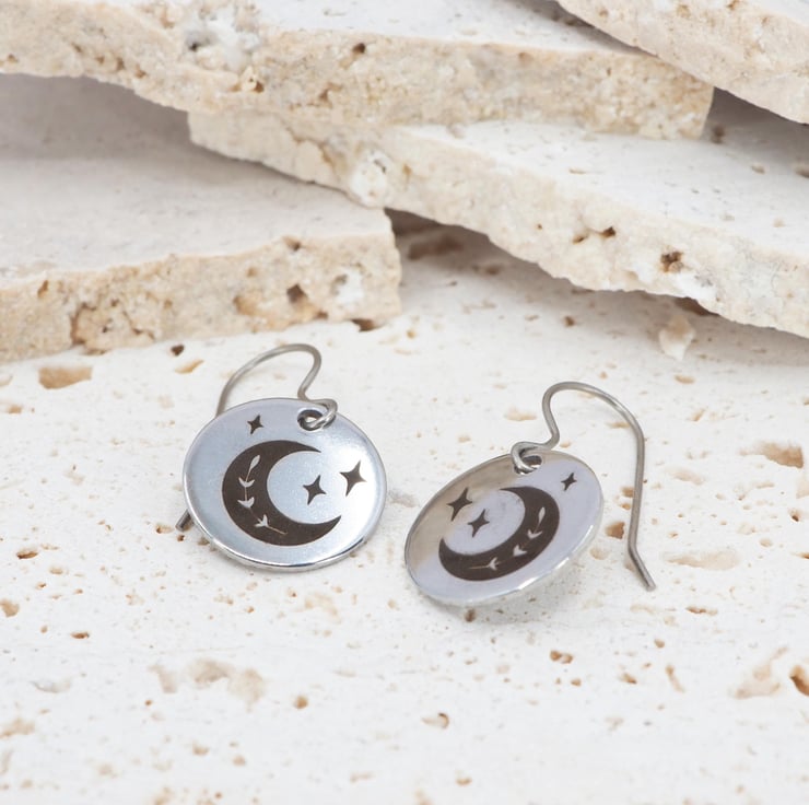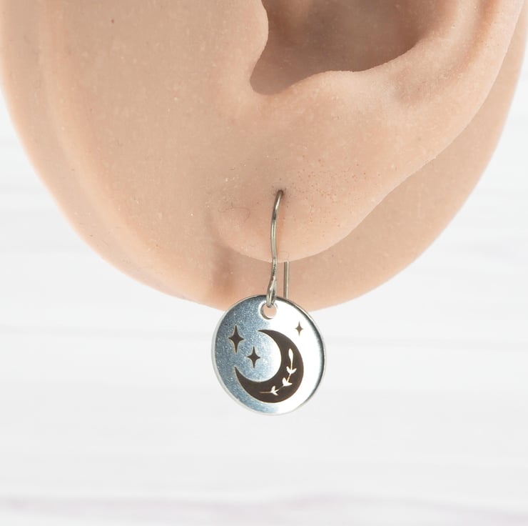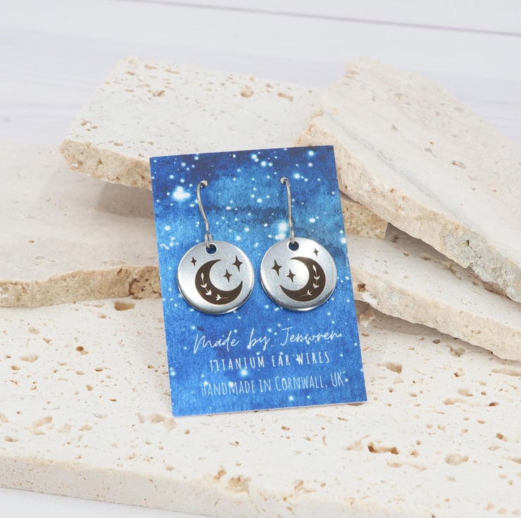 Folk crescent dangle earrings - Hypoallergenic titanium ear wires