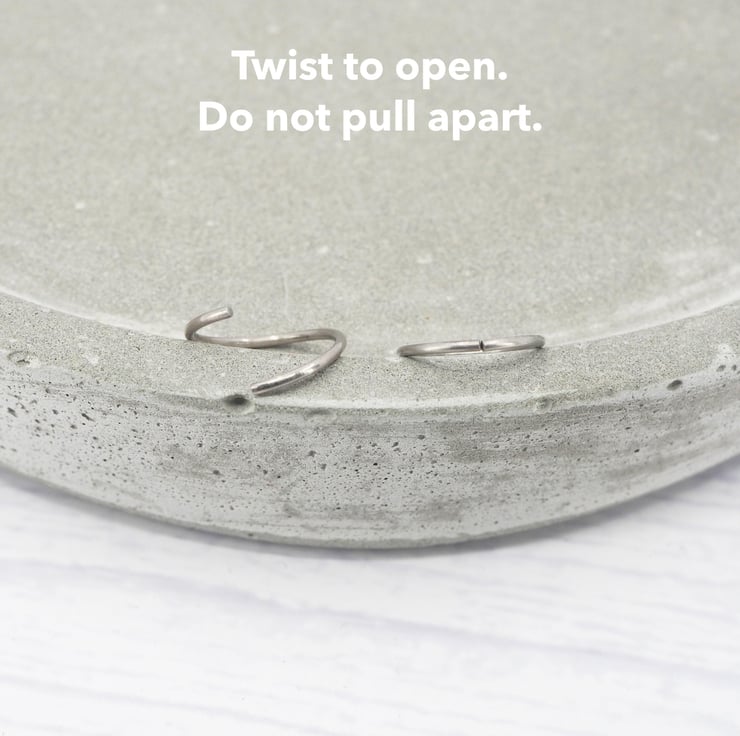 The hoops twist open as shown in the pictures above so they can be slipped through the piercing easily.