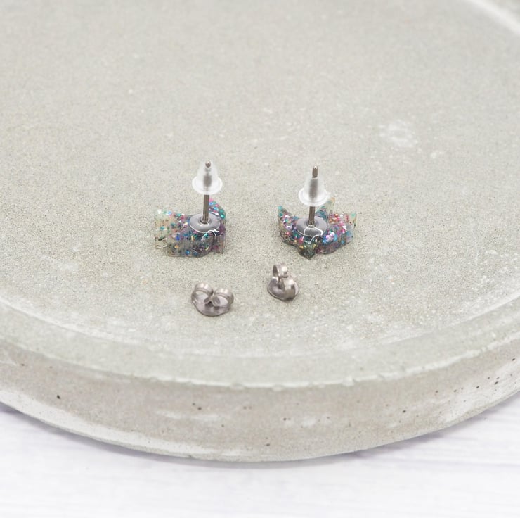 Titanium posts - Mini Mixed glitter swallow bird stud earrings - Hypoallergenic