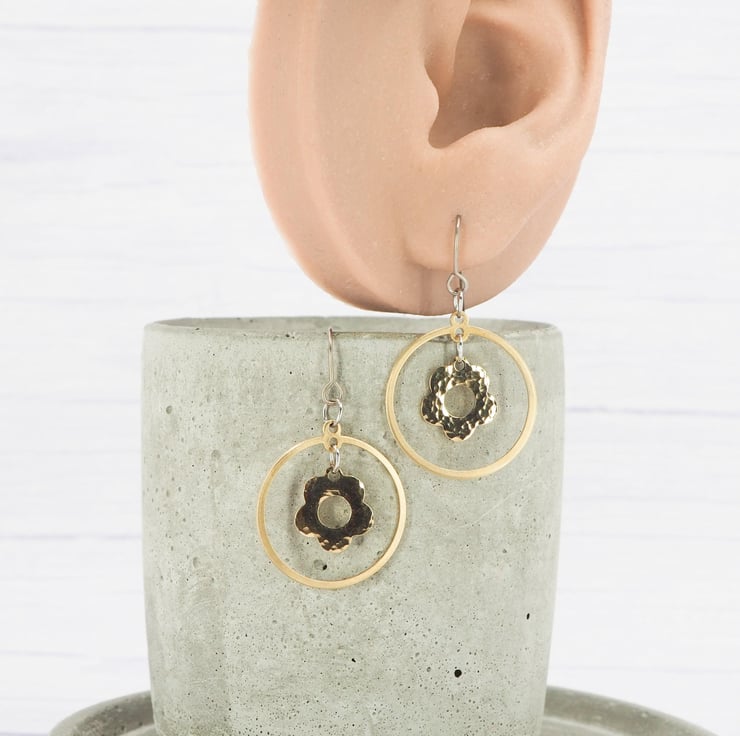 The earrings measure around 1.7" (4.3cm) from the top of the ear wire to the bottom of the rings.