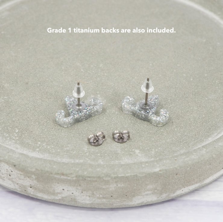 Holographic glitter uterus studs with 0.7mm ear stems.
