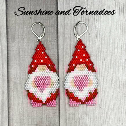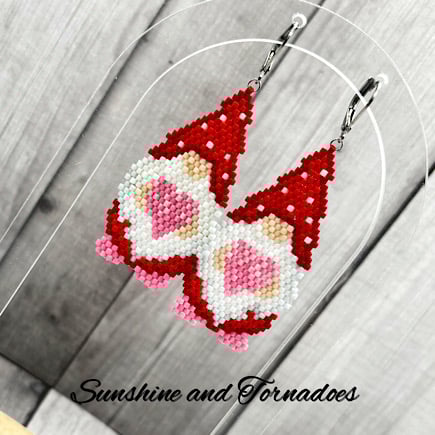 I love making fun and cute jewellery, and wanted to make some earrings for my Valentine's range that weren't just heart shaped. This pattern was designed by Pengu Beading, and has been stitched by Sunshine and Tornadoes, with permission to sell the finished items, with many thanks.