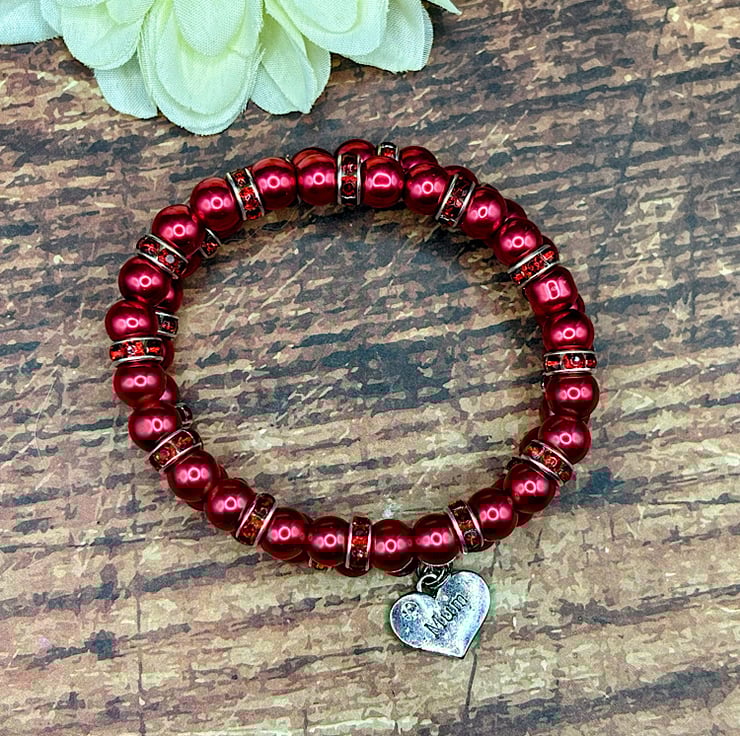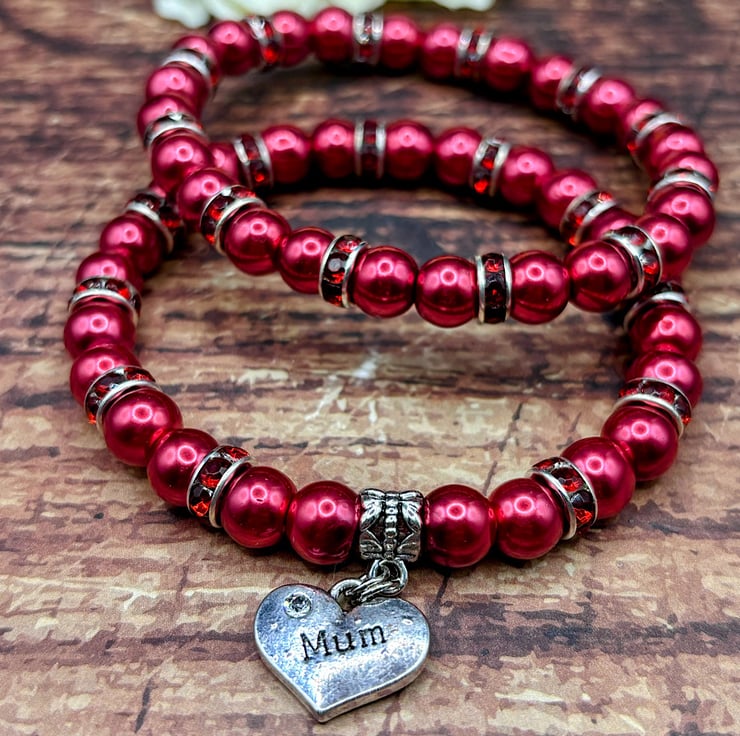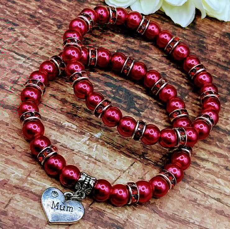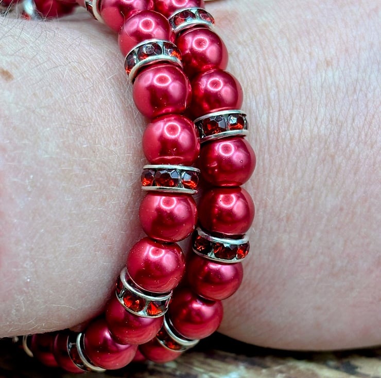 I have made this gorgeous stretchy bracelet set using 8mm Faux Glass Pearl Beads and sparkly Rhinestone Spacers.