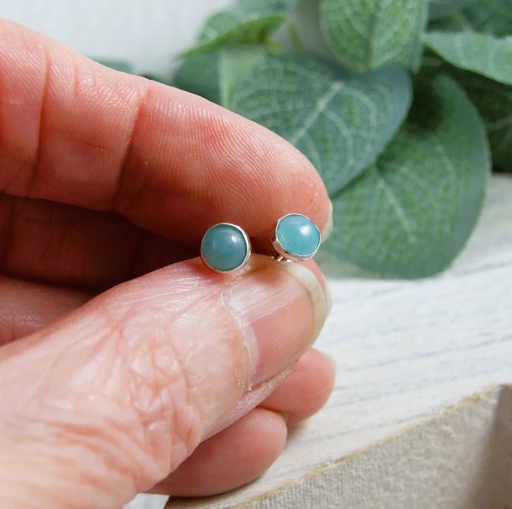 Sterling Silver Studs. Amazonite Gemstone Earrings,
