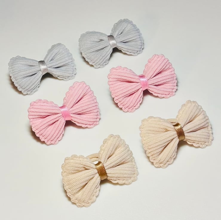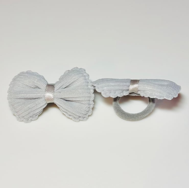 Handmade soft corduroy fabric in Grey set on Grey mini bands for a soft and comfortable hold.