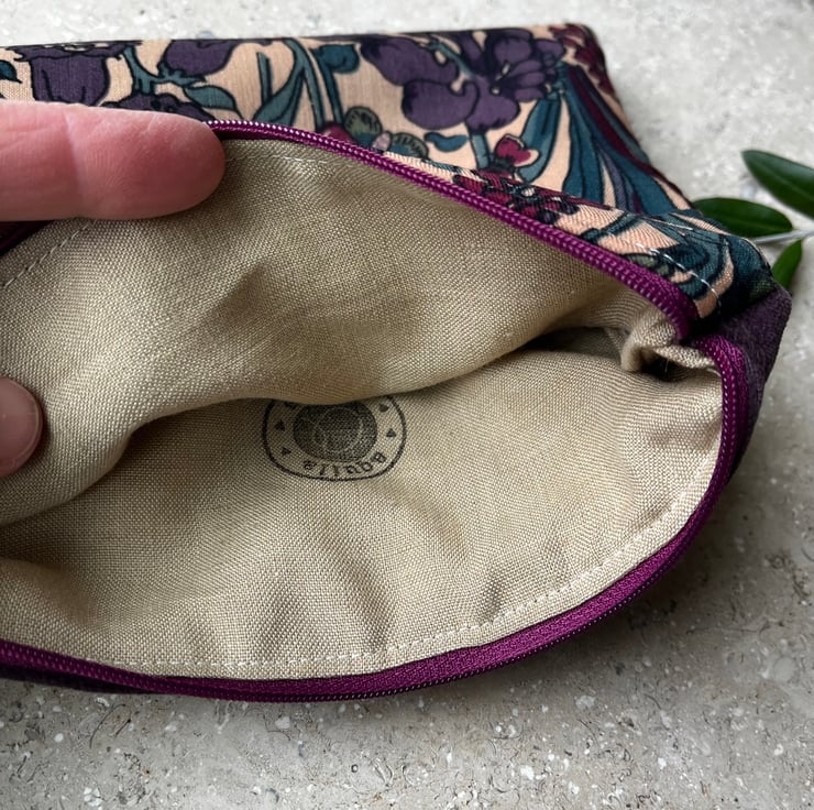 Vintage Liberty Penelope zip pouch with velvety back and linen lining