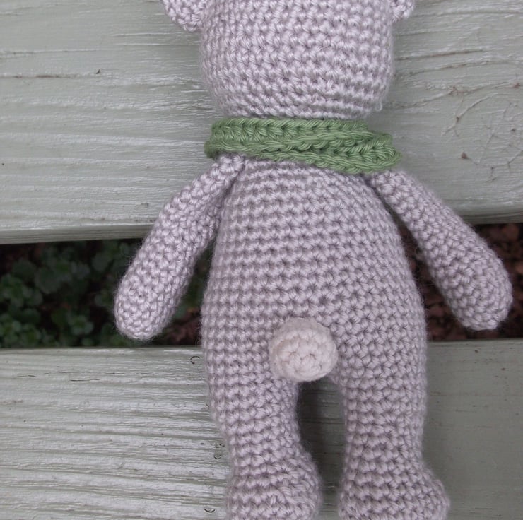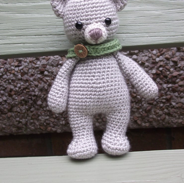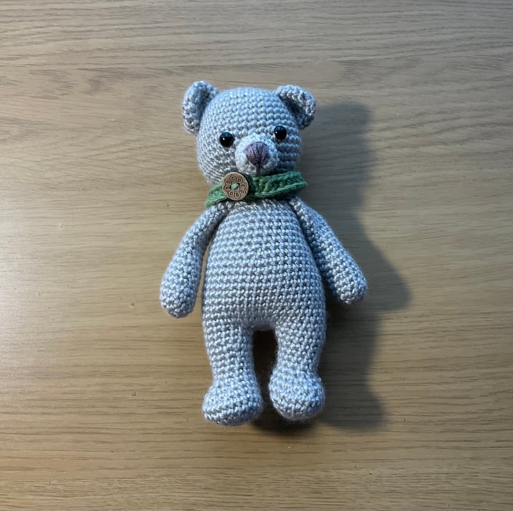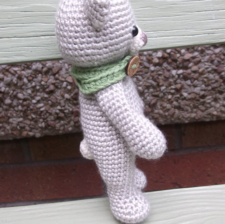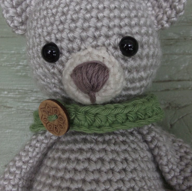 He stands just 17cms high, and comes wearing a cute green scarf with a bamboo button.