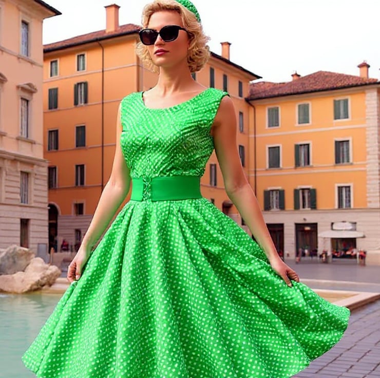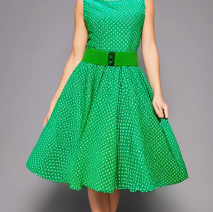 1950s Vintage Retro Rockabilly polka dot Print dress, green women's sizes 14-26