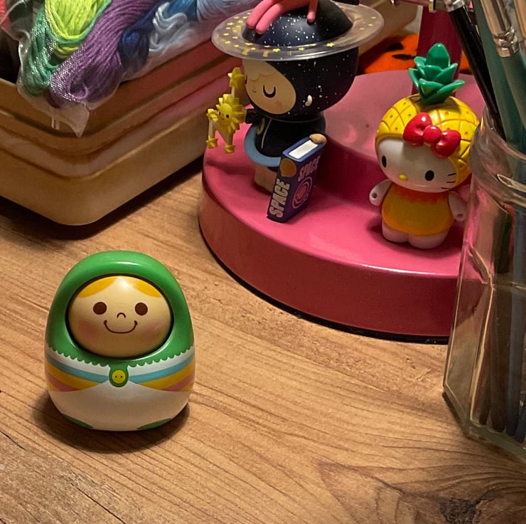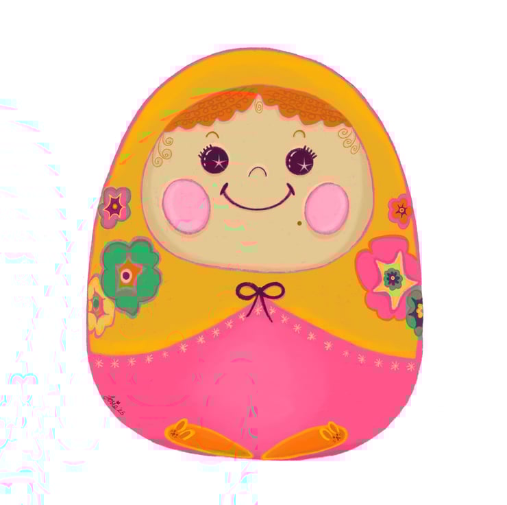 This illustration is based on the little Japanese fortune teller toys; Unazukins, which were produced by Bandai, they nodded or shook their heads in answer to your questions and came in many colours and patterns, I loved them and still have two!