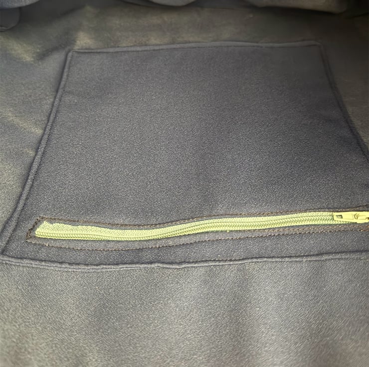 In a four patch design on the front panel and plan navy blue cotton on the reverse