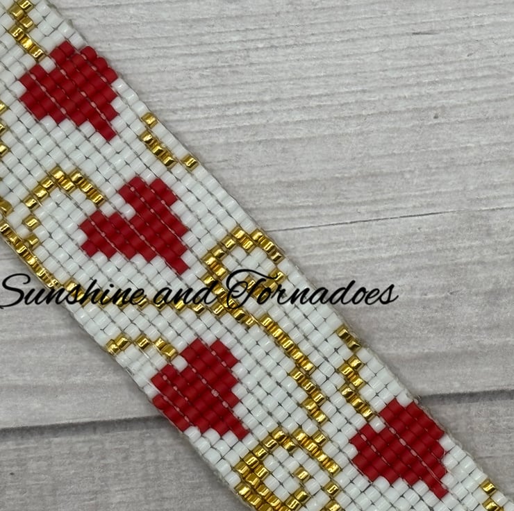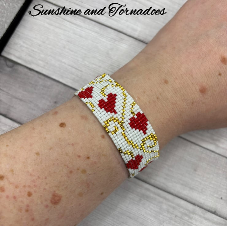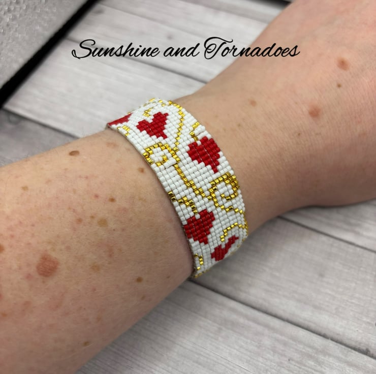 The pattern for this bracelet caught my eye when I was looking for a new addition to my Valentine range. Pengu beading is one of my favourite designers to purchase patterns from and I hadn't used my bead loom for a long time so it inspired me to get the loom out again.