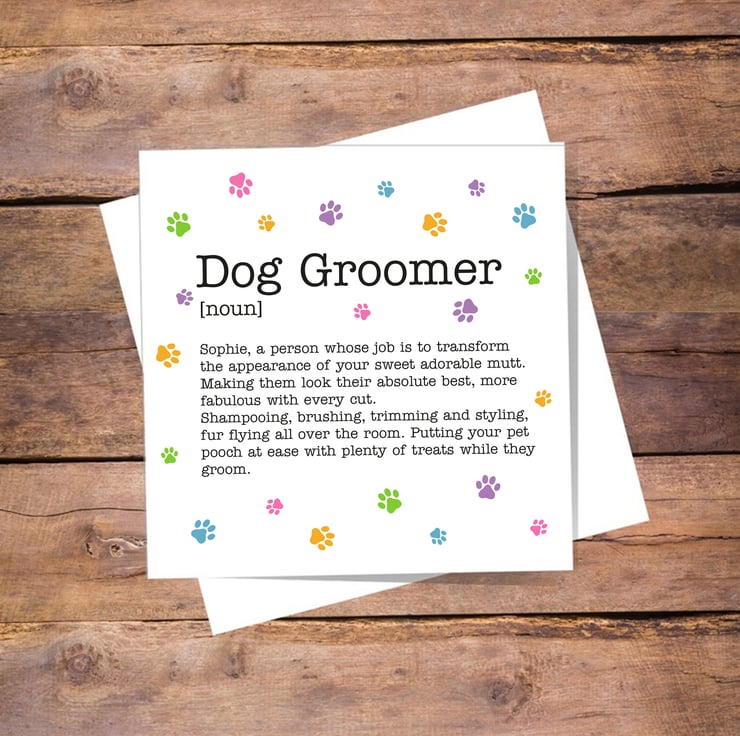 Dog Groomer Definition Card - Birthday, Thank you, personalised, blank inside