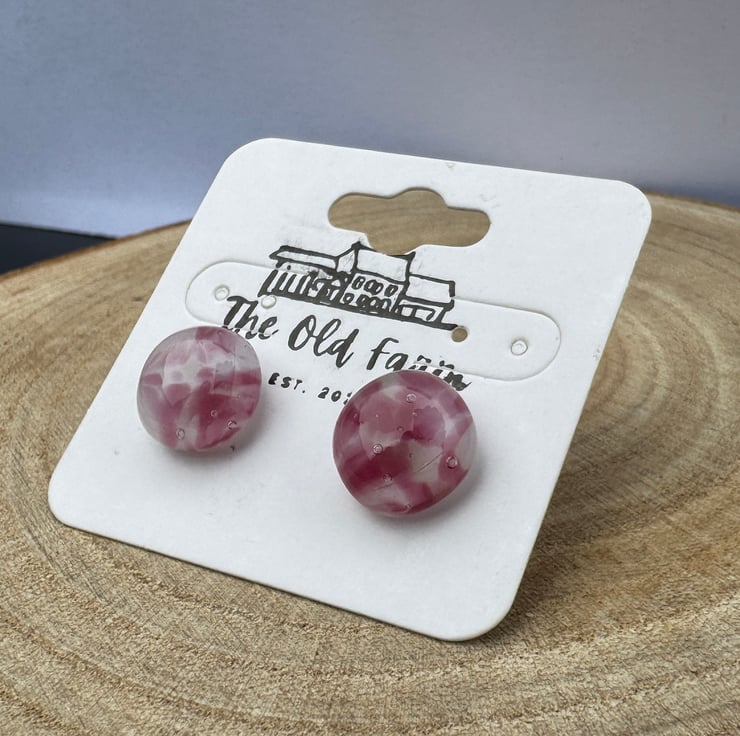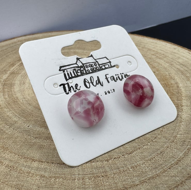 These beautiful handmade earrings feature a stunning blend of soft pink and crisp white glass, creating an elegant and natural design. Crafted with care, each pair is unique, showcasing dedication to detail. The delicate glass pieces are carefully shaped and mounted, offering a lightweight and comfortable wear. Whether you're dressing up for a special occasion or adding a pop of color to your everyday look, these earrings make a perfect statement. Measuring approximately 1cm and mounted on stirling silver rods, their feminine appeal makes them a must-have accessory, perfect for any jewellery collection.