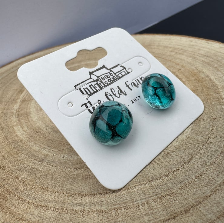 These exquisite handmade blue glass earrings are the perfect fusion of elegance and artistry. Crafted with precision, each earring features a rich, sea blue and black hue that catches the light and creates a stunning, radiant glow. The smooth, polished glass design is both modern and timeless, making these earrings versatile enough for any occasion—whether you're dressing up for a special event or adding a pop of color to your everyday look. Measuring 1cm and mounted on stirling silver rods, these are lightweight and comfortable, they offer a bold yet sophisticated statement, adding a touch of luxury to your style. With their unique, handcrafted charm, these blue glass earrings are sure to become a treasured piece in your jewelry collection.