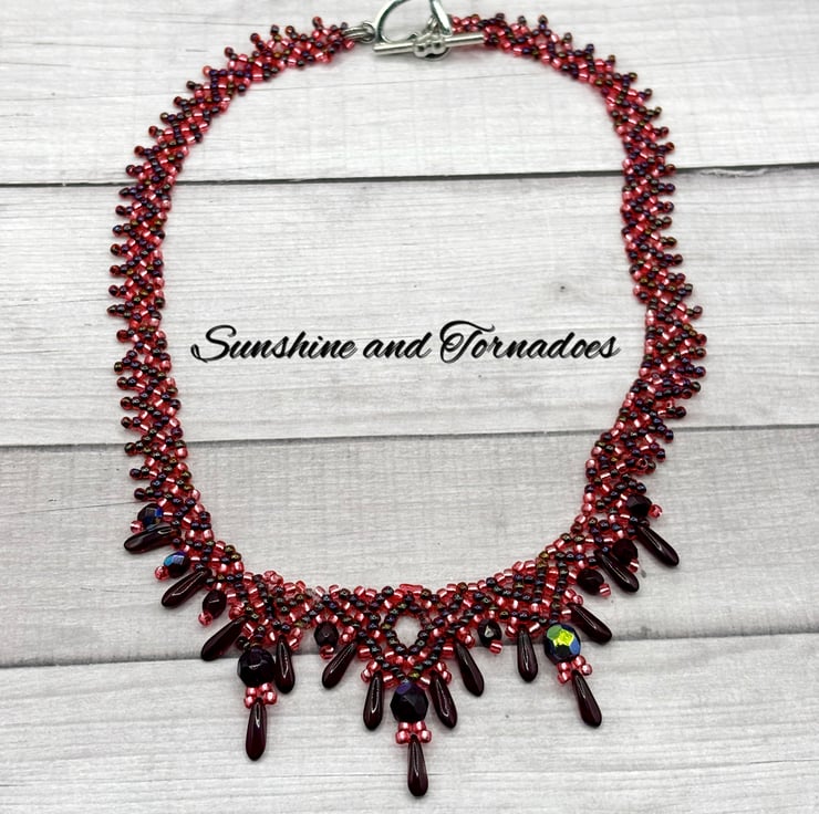 This stunning beaded collar has been made using Toho glass seed beads, faceted rondelles and baby dagger beads.