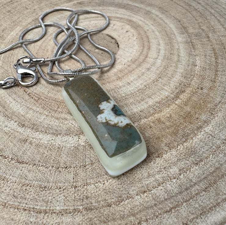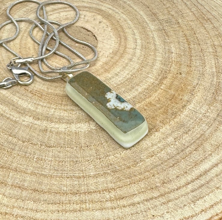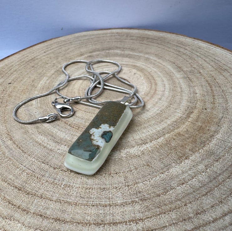 This exquisite handmade cream and blue fused glass pendant is a stunning piece that effortlessly blends elegance with artistic charm. The soft, creamy hues complement the calming shades of blue, creating a serene and sophisticated design. Each pendant is individually crafted, with the fused glass technique allowing the colors to merge and form organic, flowing patterns.