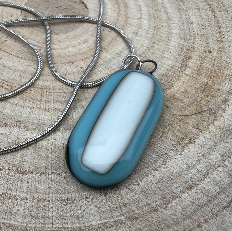 This stunning blue and cream pendant is a true statement piece, expertly crafted to add a touch of elegance and sophistication to any outfit. The soft blue hue blends beautifully with the creamy tones, creating a serene and harmonious design that captures the essence of timeless beauty. Whether you're dressing up for a special occasion or adding a chic accent to your everyday style, this pendant is the perfect choice. Its unique design, paired with its versatile color palette, makes it a must-have accessory for anyone who loves understated luxury. Lightweight and comfortable, this pendant is sure to become a cherished piece in your jewelry collection.