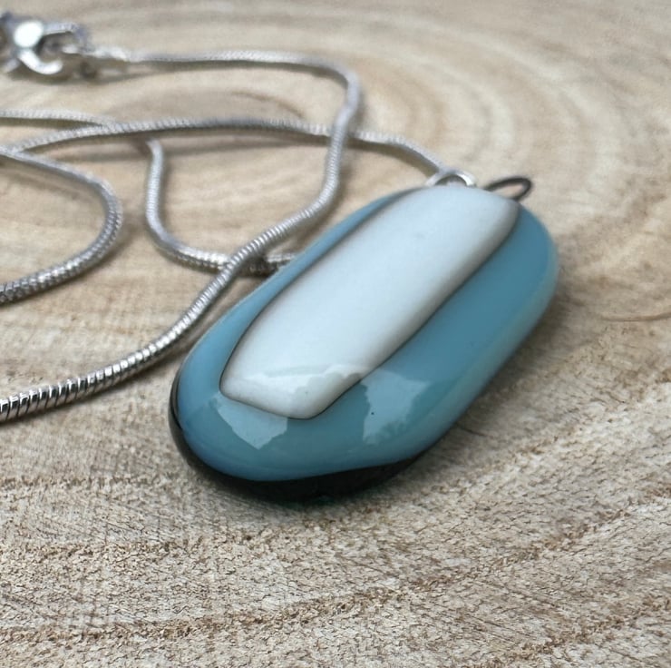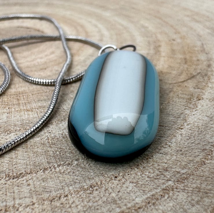 The blue in the pendant captures the clear, expansive sky, while the cream represents the light, fluffy clouds drifting through the atmosphere. This pairing symbolises the peacefulness of a cloudless day, offering a feeling of openness, freedom, and serenity.