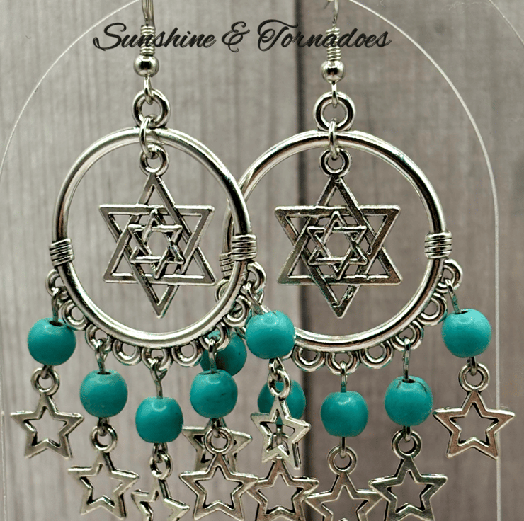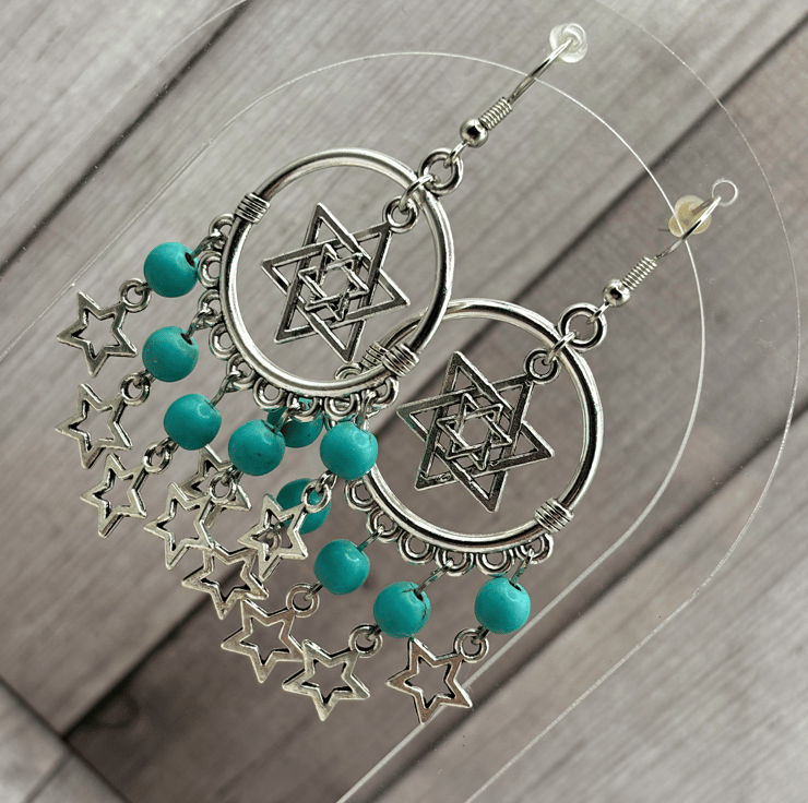 I love alternative style jewellery, and working with Gemstones. I also love stars. The beautiful bright silver of these hoops and charms is offset perfectly by the beautiful turquoise blue of the Howlite. They remind me of a beautiful Greek island. I have lots of Gemstones in stock, so can make these with your favourite one - pop me a note on your order.