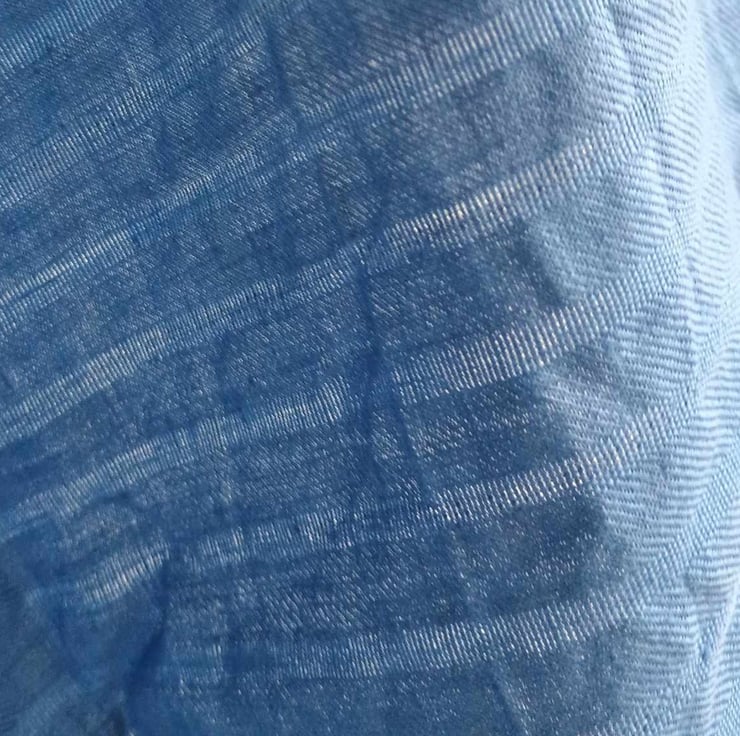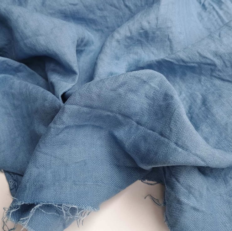 A beautiful subtly self striped linen fabric in a soft blue that's perfect for crafts and costumes as well as dressmaking. Originally bought for making hand stitched medieval tunics, this textured fabric would be lovely as a background for applique or freestyle embroidery. or a lightweight summer skirt.