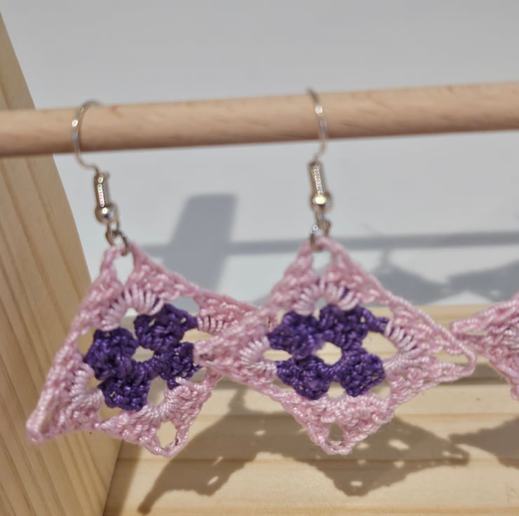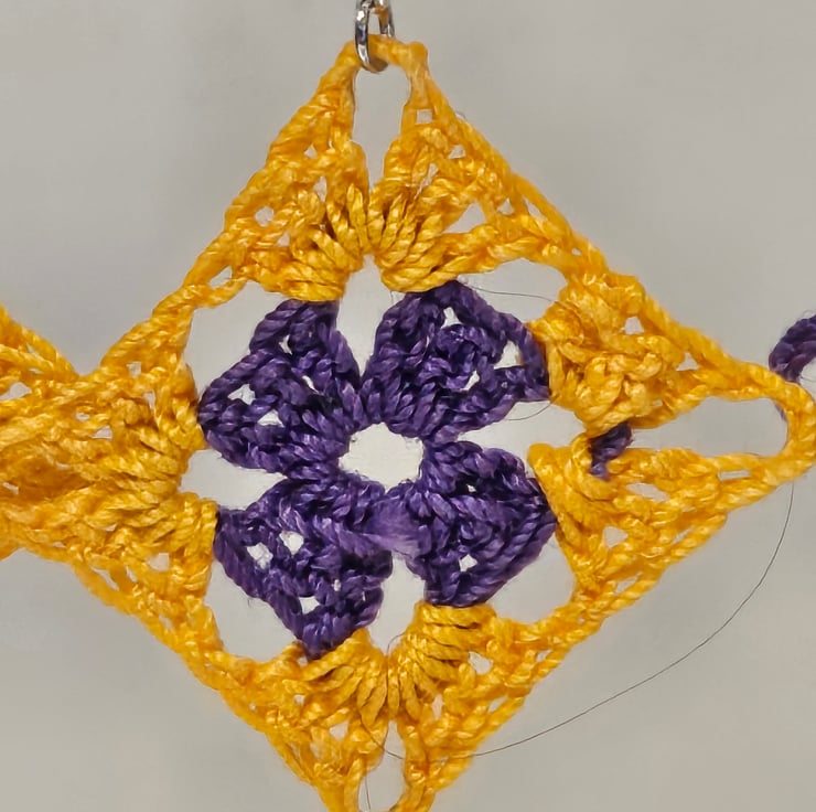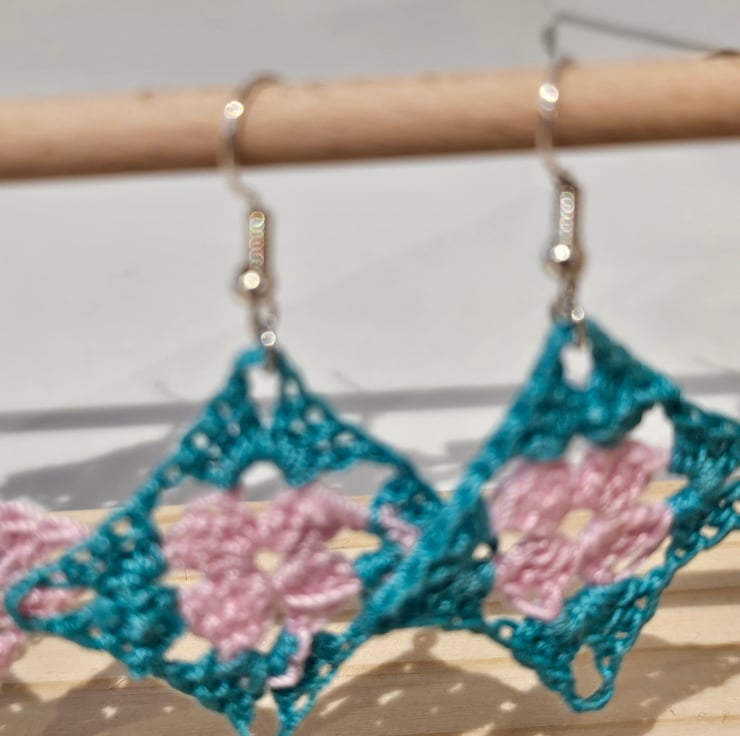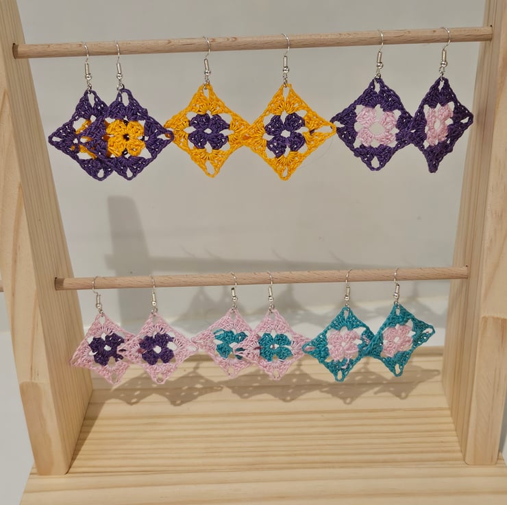 I love Granny Squares and I thought how cute they would be as small earrings in bright colours. So this is what I came up with. Hope you like them as much as I do.