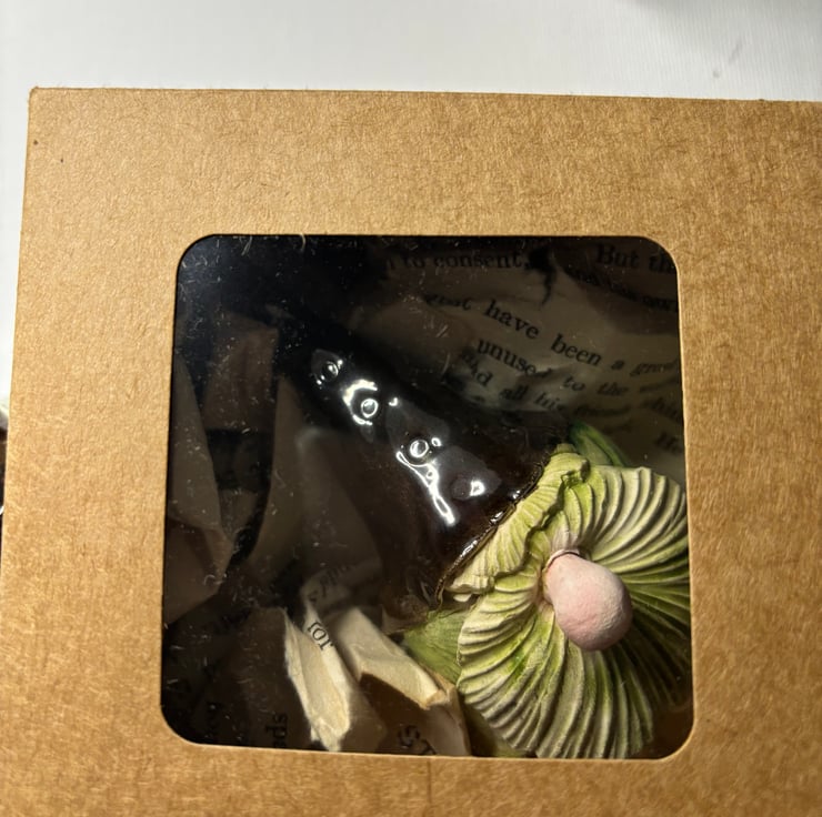I package in a little box with a window and he will be hustled in recycled vintage book packaging.
