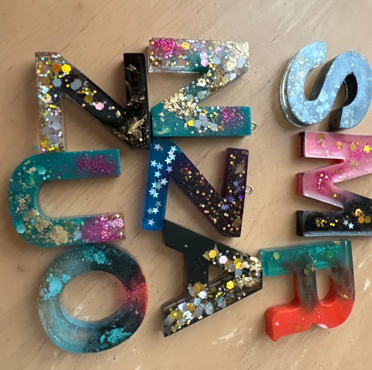 Resin Alphabet keychains.