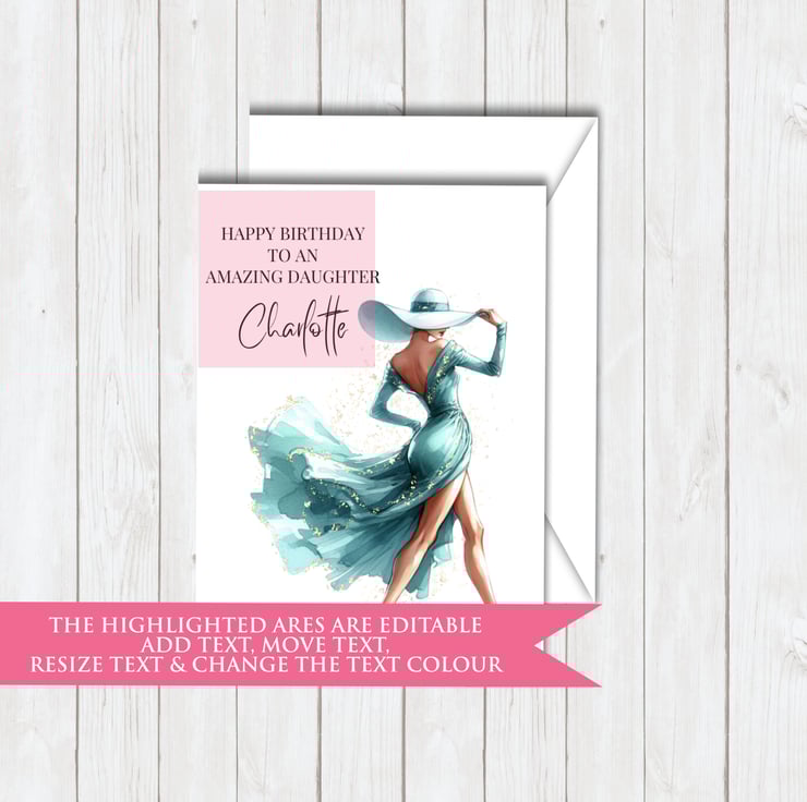 This card features a fixed image that can not be edited. However, you can personalise an of the text, add additional text even change the colour of text.